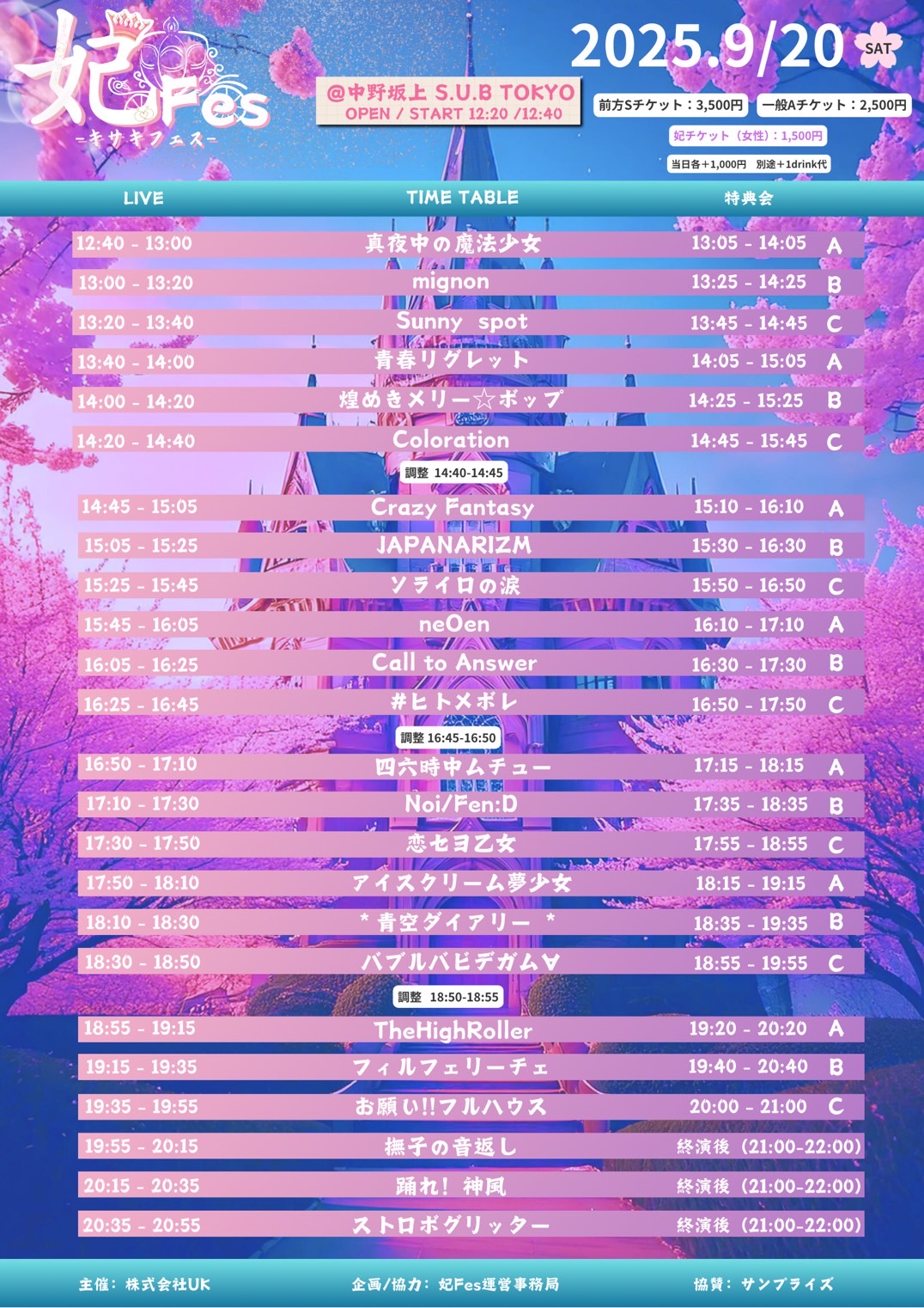 出演:撫子の音返し/ストロボグリッター/フィルフェリーチェ/踊れ!神風/真夜中の魔法少女/JAPANARIZM/青春リグレット/バブルバビデガム∀/アイスクリーム夢少女/四六時中ムチュー/neOen/mignon/煌きメリー☆ボップ/Crazy Fantasy/Coloration/if onIy …/恋セヨ乙女/ソライロの涙/お願い!!フルハウス/Sunny spot/