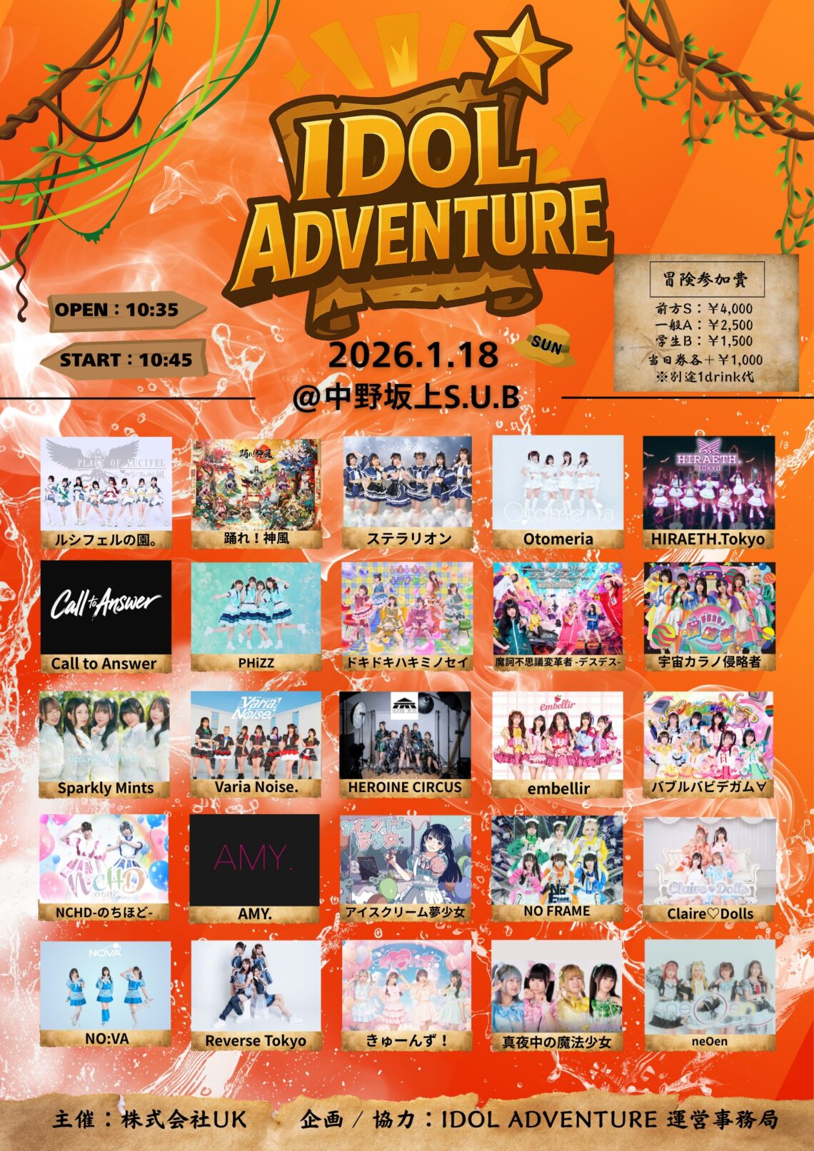 きゅーんず! / Claire♡Dolls / ドキドキハキミノセイ / 踊れ!神風 / HEROINE CIRCUS / 真夜中の魔法少女 / NO:VA / ステラリオン / neOen / HIRAETH.Tokyo / ルシフェルの園。 / バブルバビデガム∀ / アイスクリーム夢少女 / 魔訶不思議変革者 -デスデス- / AMY. / NO FRAME / Sparkly Mints / Varia Noise. / Call to Answer / NCHD-のちほど- / Reverse Tokyo / embellir / 宇宙カラノ侵略者 / PHiZZ/Otomeria