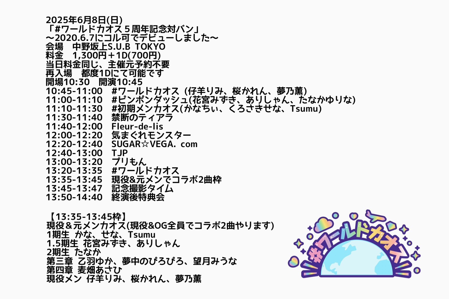 「#ワールドカオス5周年記念対バン」 2020.6.7にコル可でデビューしました
