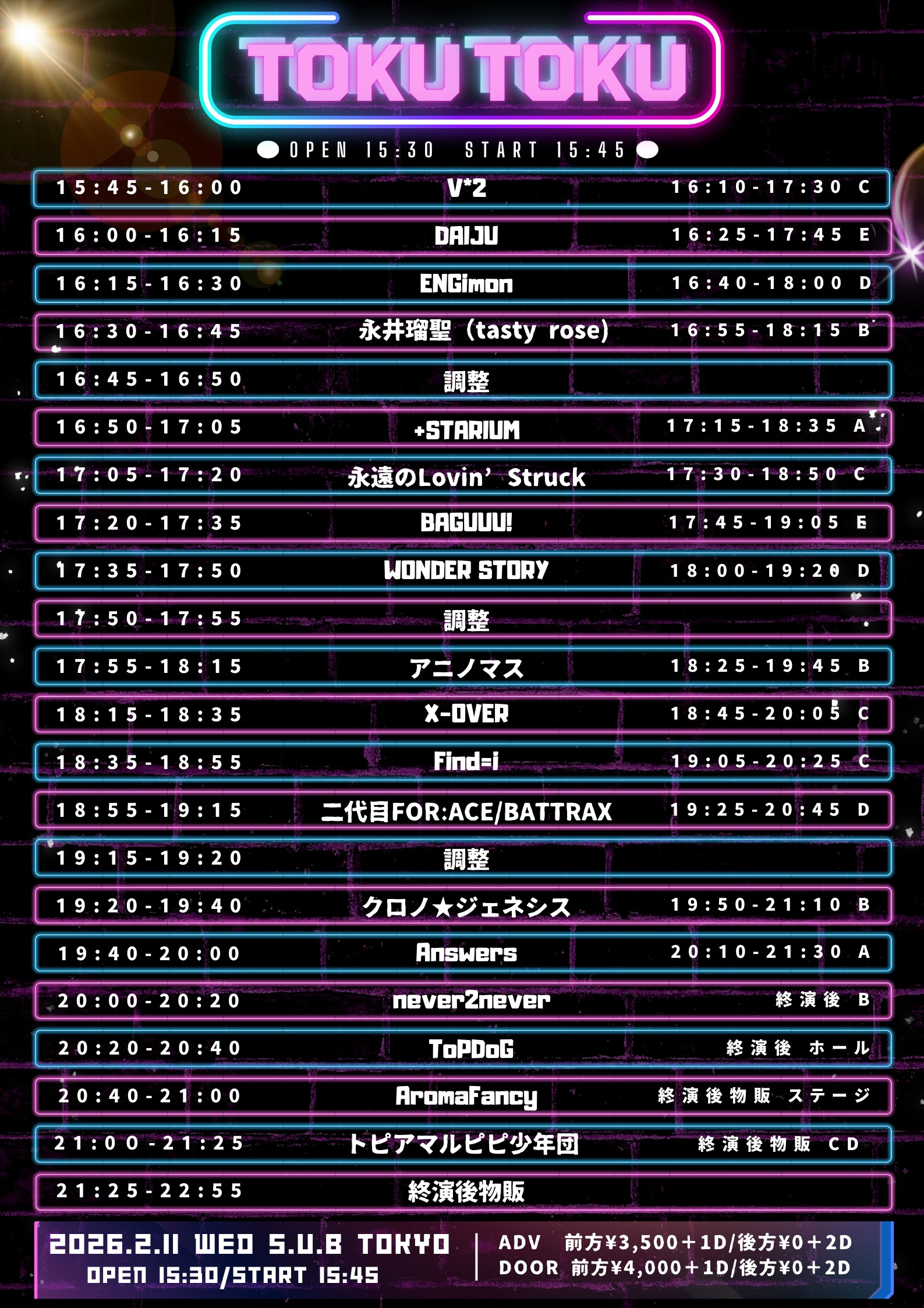15:50 OPEN / 16:10 START ※予定